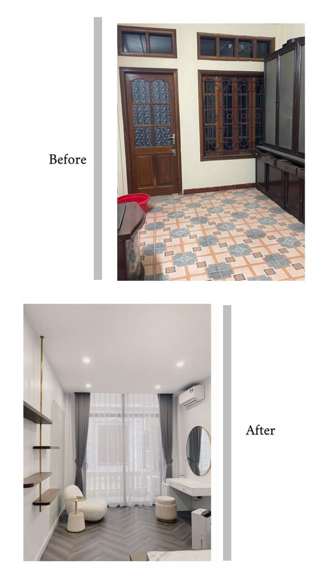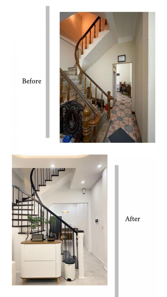 Ngôi nhà 3 tầng trước sửa chữa chắc hẳn rất quen thuộc. Qúy khách có thể tìm thấy kiểu dáng như vậy ở bất kỳ vùng miền quê nào. Từ ngoài vào trong không có gì nổi bật thậm trí còn xuống cấp nghiêm trọng ở rất nhiều hạng mục. Tuy nhiên bằng những cách thần kỳ nào đó những kiến trúc sư của Công Ty TNHH Kiến Trúc & Nội Thất Hoàng Thiên Nhân đã thiết kế một cách khéo léo từ nội đến ngoại thất một cách tinh tế nhất đã làm ngôi nhà như khoác trên mình một tấm áo mới. Hiện đại, cá tính trẻ trung và tiện ích.