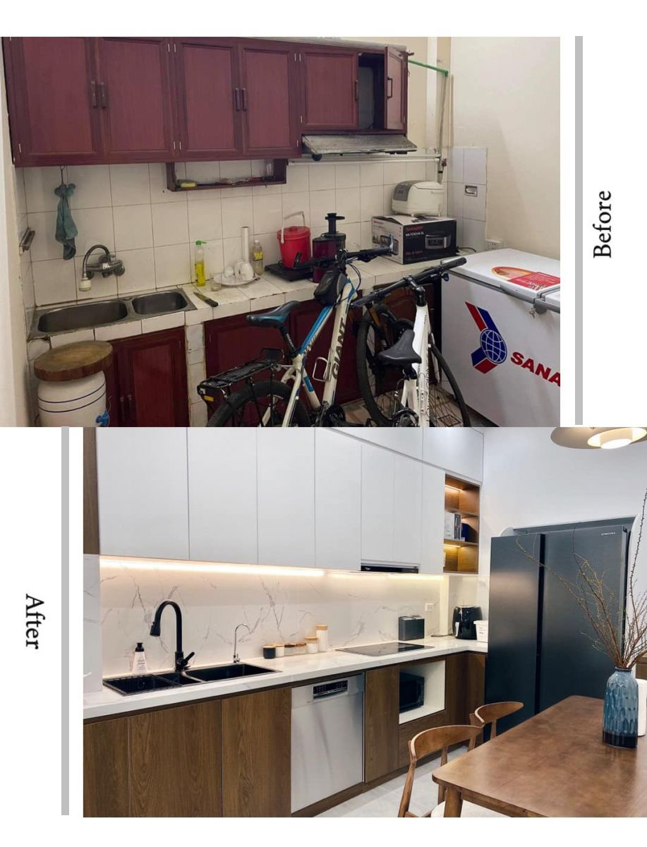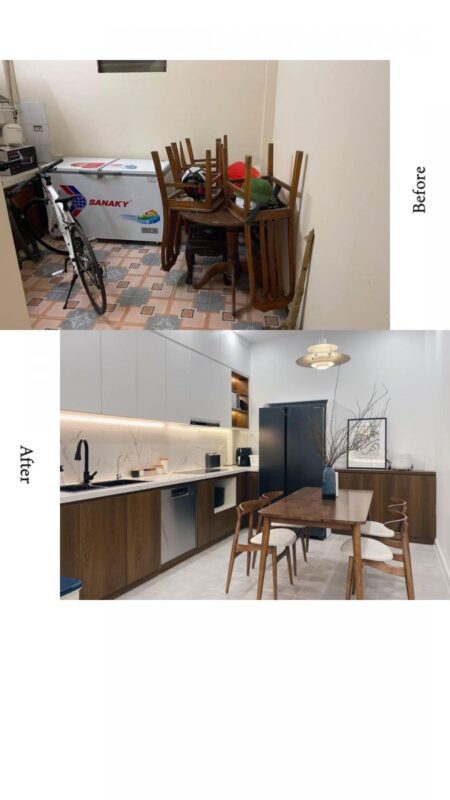 Sau đó vợ chồng chị Nguyệt Minh đã được kiến trúc sư Công Ty TNHH Kiến Trúc & Nội Thất Hoàng Thiên Nhân tư vấn tận tình giúp định hình phong cách thiết kế cho tổ ấm nhỏ. Đắc biệt, do chi phí không có nhiều, trong khi một công trình cải tạo phải đập đi xây lại nhiều phần thô cũng sẽ tốn kém không khác gì phần mới nên anh chị đã phải cân nhắc rất kỹ. Kiến trúc sư tại Công Ty TNHH Kiến Trúc & Nội Thất Hoàng Thiên Nhân đã tư vấn rất kỹ các phương án thiết kế để tối ưu chi phí cho gia đình chị.