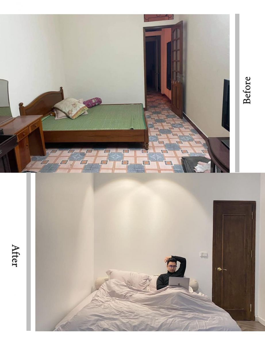 Chi sẻ về ngôi nhà của mình sau khi hoàn thiện “Đây là nhà mặt đất xây được khoảng 20 năm, chồng mình quyết định cải tạo lại thành một tổ ấm nhỏ xinh để 2 vợ chồng mới cưới có chỗ quây quần chui ra chui vào. Thời gian từ lúc bắt đầu lên kế hoạch cho đến tìm đội ngũ thiết kế và lên ý tưởng xong đến thi công tất tần tật là 3 tháng.